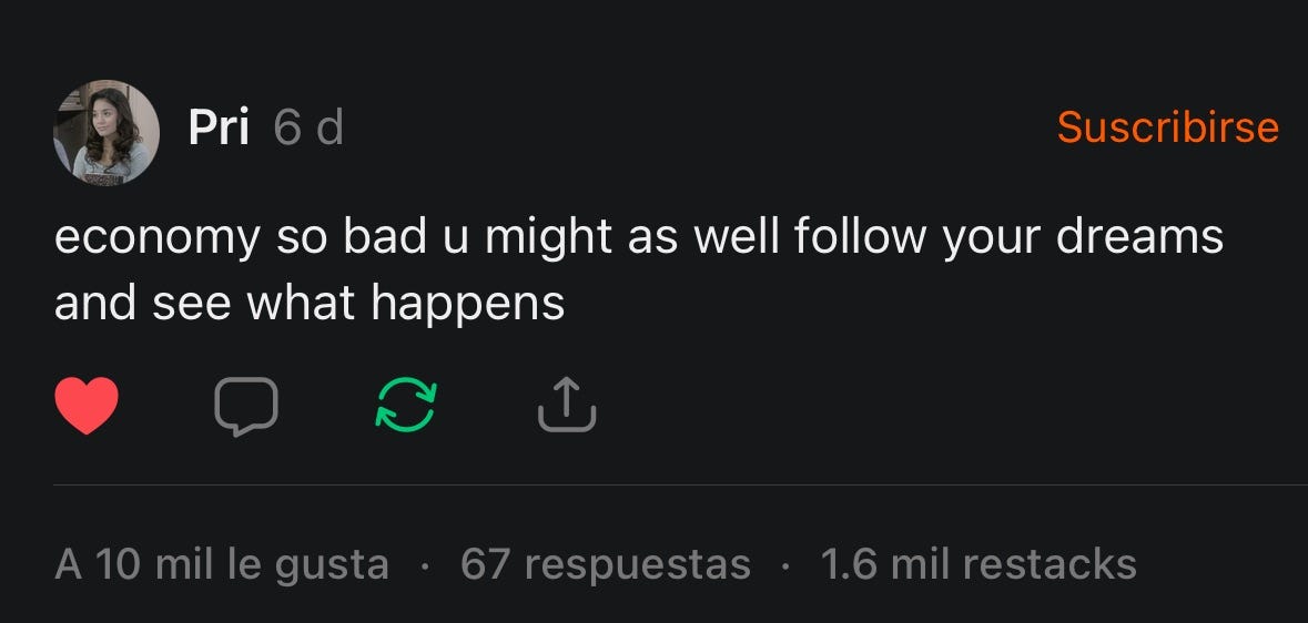 Business Insider published an article two weeks ago with the subject line “Applying to a job in 2025 is the statistical equivalent of hurling your resume into a black hole.” What an encouraging read! The author of this story writes about a laid-off VP of talent acquisition at a media agency who applied unsuccessfully to 300 positions in 2024 and now works as a grocer so her daughter can keep taking ice-skating lessons. “I just want to work,” she says. Business Insider calls what’s happening right now “market congestion,” which I guess has something to do with a decrease in white collar jobs, an influx of eager, highly skilled workers, and a ridiculously efficient ai-fueled resume/cover letter submission machine. The applications-to-recruiter ratio is now 500 to 1. Where people used to have to scour over the newspaper and mail-out a printed, manually written application, now we have “suggested jobs” emailed to our inboxes on a weekly basis (if not daily basis) and our computers lets us feign a personalized cover letter in two dainty clicks. Thanks Chat GPT! You’ve saved me so much time. It’s just so great when a bunch of suuuuper smart big tech people come in and drop a technological-advancement nuke on the world that supposedly makes everything way easier and comes with absolutely no user manual.